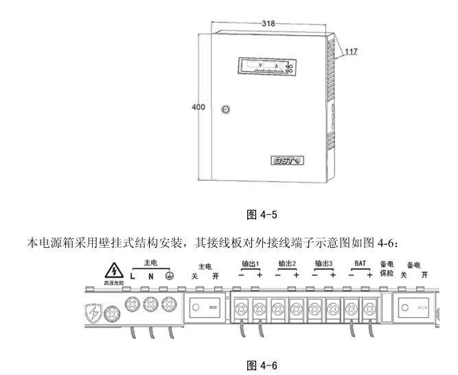 本電源箱采用壁掛式結構安裝,其接線板對外接線端子示意圖如圖 4-6: